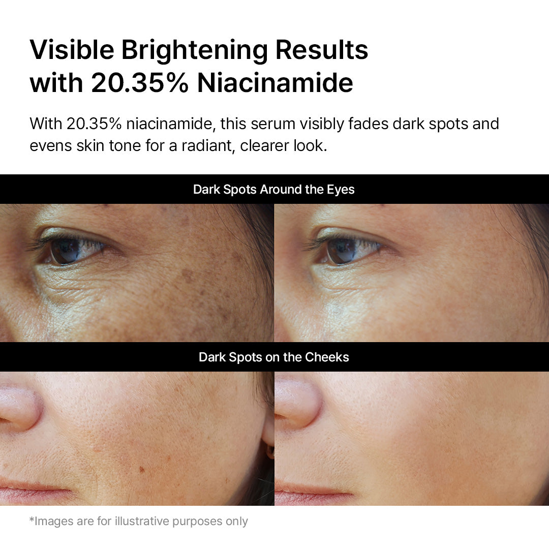 The Niacinamide 20.35% Rice Brightening Serum effectively lightens freckles and dark spots, improving dull, uneven skin tone and blemishes. Its lightweight, refreshing formula delivers quick brightening results without irritation, making it ideal for daily use for a radiant, healthy complexion.
