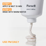 A: Apply an even layer to clean skin, avoiding eyes. Leave on for 10–15 minutes, then rinse off with lukewarm water. Use 2–3 times per week.