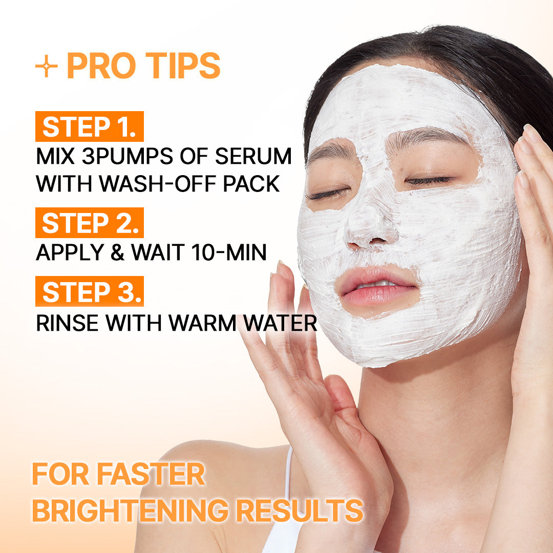 A brightening wash-off pack that removes dull, uneven skin tone while deeply hydrating and soothing the skin. Featuring Niacinamide, rice extract, and probioticcs, this soft, tofu-like creamy texture pack delivers gentle yet effective brightening care. It combats dryness and brightens skin tone without irritation, breaking the stereotype that brightening causes dryness.