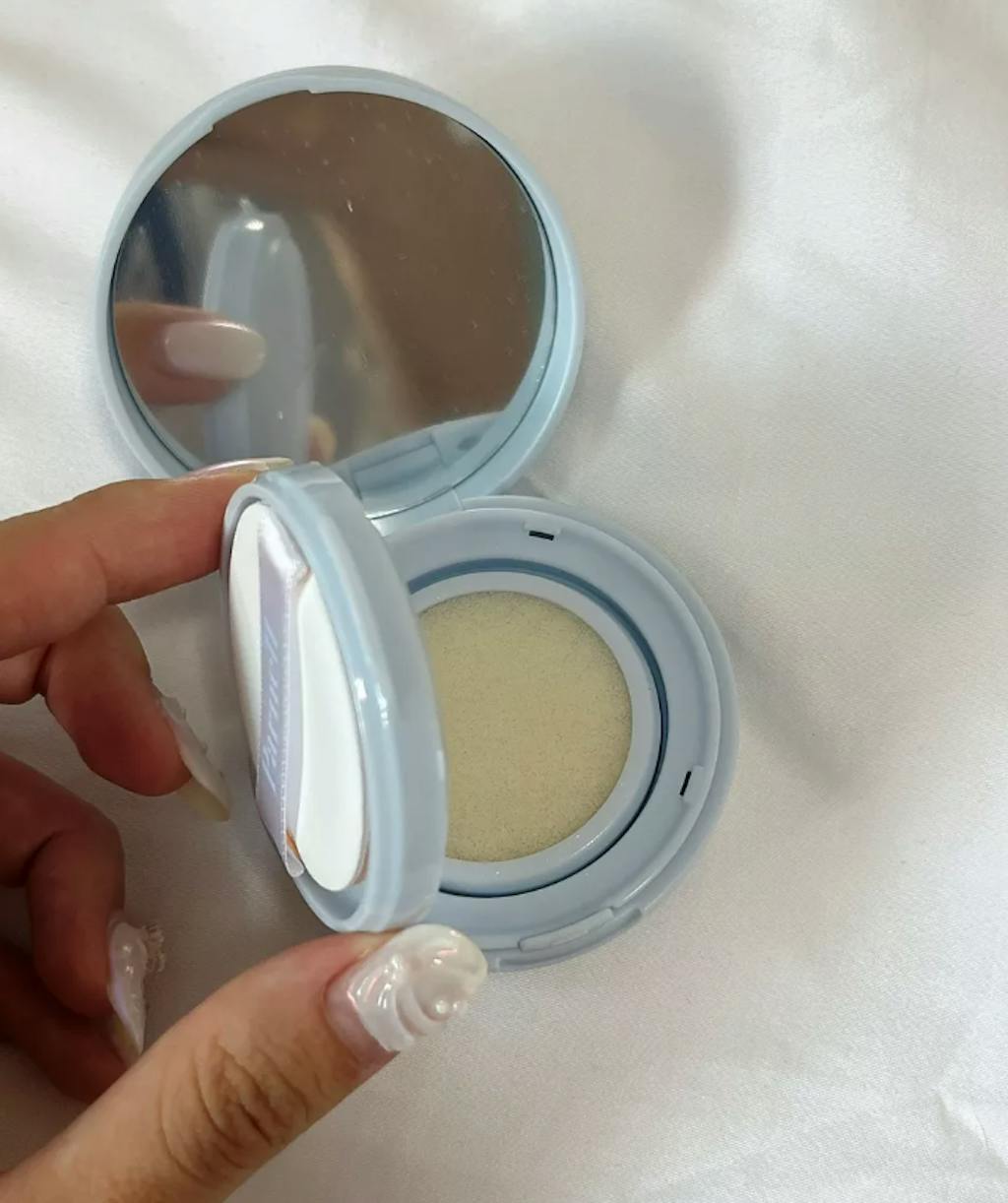 Lightly pat the product 1–2 times onto the same area to ensure even coverage. Avoid rubbing the puff against your skin, as a sliding motion may cause your makeup to look cakey or lead to pilling.