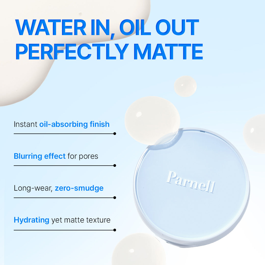 Designed as a 3-in-1 beauty multi-tool, this cushion offers ultimate versatility by acting as a pore primer to smooth texture, a setting powder to lock in makeup, and a portable solution for quick touch-ups on the go. Its weightless liquid formula transforms seamlessly into a powdery matte finish in just 5–10 seconds, providing professional-grade results without any sticky residue. Compact and convenient, the No-Sebum Cushion also reflects a conscious approach to beauty, combining its pH-balanced, dermatologist-tested formula with a commitment to sustainability through responsibly sourced materials.